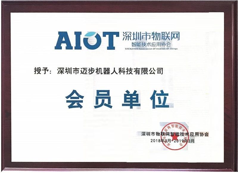 2018年3月,邁步機器人加入深圳市物聯網智能技術應用協會并被授予會員單位牌匾。